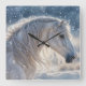 Schönes Pferd im Schnee Winter Quadratische Wanduhr