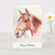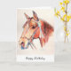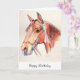 Schöner Farbstift zeichnend von meiner Bucht Stute mit einem Rosette tragen. Liebliche Geburtstagskarte für Pferdefreunde.