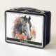 Schönes Pferd mit Blume personalisierte Lunchbox mit einem anderen Bild auf der Vorder-und Rückseite, bearbeiten Sie den Namen selbst, wenn Sie bestellen.