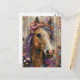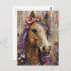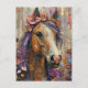 Die künstlerische Intelligenz eines wunderschönen braunen Pferdes mit lila Mist und Blume