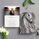 Diese moderne Script-Party Einladung zum 21. Geburtstag ist perfekt für Pferdefreunde. Die Vorderseite zeichnet sich durch ein modernes minimalistisches Design mit einem horizontalen Single-Foto aus. Auf der Rückseite ist ein schönes verziertes silbergraues Pferd. Alle Schriftart und Farben können auf der Vorderseite der Einladung individuell angepasst werden.