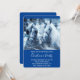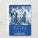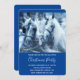 Weihnachts-Party Einladung mit einem Foto eines Pferdepaares, das zusammengeschraubt wurde. Ein schneebedeckter Tag und ein blauer Filter schaffen ein magisches Foto.