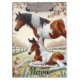 Schönes Pferd und Foal im blühenden Obstgarten Klemmbrett
