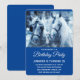 Geburtstagsfeier mit Foto eines Pferdepaares, das zusammen getroffen wurde. Ein schneebedeckter Tag und ein blauer Filter schaffen ein magisches Foto.