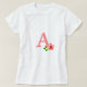 Schönes rosa Monogramm mit Blume auf weißem T - Shirt.