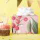 Schöne pinkfarbene Weihnachtsgeschenkverpackung, perfekte Papiere zum Verpacken, Crafting, Scrapbooking und zum Eintauchen in Radfahrprojekte. Rosa gefeierte Verpackung, Blume und Beeren.