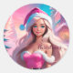 Schönes rosa Weihnachtsmädchen 01 Runder Aufkleber