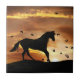 Eine tolle Kunstkachel für Pferdefreunde, ein hübsches Pferd, das bei Sonnenuntergang mit Vögeln läuft