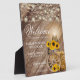 Schönes rustikales Holzfass und Sonnenblumen Fotoplatte