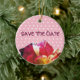 Save the Date dekorative Ornamente. Weiße Punkte, farblicher Hintergrund und schönes Foto der Rose. Leicht anpassbarer Text.