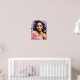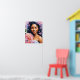Dieses Blumenporträt zeigt eine wunderschöne, lächelnde schwarze Frau, die von Hydrangeas geschmückt und gehalten wird. Ein helles, farbenfrohes, fröhliches Bild mit rosa, blau, orange, periwinkle und rot.