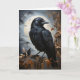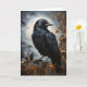 Herrlicher schwarzer Rabe auf einem Baumarm im Wald mit Vollmond im Hintergrund gekrönt. Blank Grußkarte zum Geburtstag, Jubiläum, neues Baby, danke, Beileid, etc.