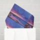 Gewebpapier mit einem schönen Foto in auffallenden Farben lila, blau und rosa bei Sonnenuntergang. Eine hübsche Küste mit Felsen.