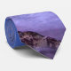 Eine Krawatte mit einem hübschen Foto in lila, blauen und rosa Farbtönen bei Sonnenuntergang. Eine hübsche Küste mit Felsen.