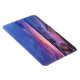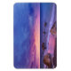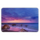 Magnet mit einem hübschen Foto in lila, blauen und rosa Farben bei Sonnenuntergang. Eine hübsche Küste mit Felsen.