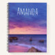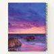 Spiralheft mit einem hübschen Foto in lila, blauen und rosa Farbtönen bei Sonnenuntergang. Eine hübsche Küste mit Felsen.