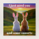 Illustration von zwei Kaninchen, die einen schönen Sonnenuntergang zusammen beobachten.