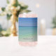 Machen Sie sich mit dieser niedlichen Dose aus Ihrem Strandstadtgeschäft bekannt. Fügen Sie Ihre Firmeninformationen über den schönen Sand unter den aquamarinen blauen Ozeanwellen dieser hübschen Küstenfotografie hinzu. Großartige Werbebrille für ein Reisebüro oder eine Küstenstadt Bar.