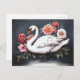 Ein anmutiger Schwan, umgeben von Vintagen Blume in einem zeitlosen Gemälde, das klassische Eleganz mit natürlicher Schönheit verbindet.