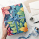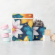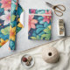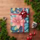 Schöne tropische Farbtöne mit hellen und dunkelrosa und orangefarbenen Blume auf dunkelblauem Hintergrund mit blauen und grünen Blätter. Die Natur inspiriert, hell, farbenfroh verpackt Papier.