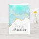 Herzlichen Glückwunsch zum Geburtstag, die Grußkarte mit einem lebendigen sommerlichen Design. Türkis / Aqua grün Aquarell Bild mit einem gewellten Imitat goldenen Rand. Elegant und schön.