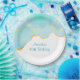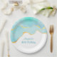 Papier Teller mit einem lebhaften sommerlichen Design. Türkis / Aqua grün Aquarell Bild mit einem gewellten Imitat goldenen Rand. Elegant und schön.