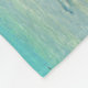 Eine Decke mit einem Foto eines türkisblauen Strandes mit großen Felsen entlang der Küste. Helle und sonnige tropische Lage.