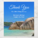 Flaschenetiketten mit einem Foto eines türkisblauen Strandes mit großen Felsen, die entlang der Küste verstreut liegen. Helle und sonnige tropische Lage.