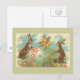 Ein riesiges grünes Ei mit roten, grünen, gelben und blauen Blumen und Mustern. Zwei Kaninchen (auch bekannt als "Bären") arbeiten am Design, und ein Baby-Kick ist oben auf seinem Flügel stehend. Vintage Retro niedliche coole bunt schöne mädchenhafte Christliche heidnische religiöse Viktorianische Blumen-und Tierlandschaft dekorative Natur Osterkunst.