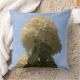 Herrliche nahe Aussicht auf die Spitze der Limonen Hydrangea-Blume mit grünen Blätter, die auf einen wunderschönen blauen Himmel zeigen. BACK of Kissen ist eine hellblaue Hintergrundfarbe. Klicken Sie auf Anpassen, wenn Sie Ihren Text personalisieren möchten. Foto von unserem Hydrangea-Strauß aufgenommen. Original Fotografie © 2012 TamiraZDesign.