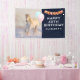 Party Banner mit Foto eines wunderschönen weißen Pferdes. Laufen durch ein schneebedecktes Feld. Majestätisch und schön.