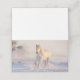 Gefaltene Platzkarte mit einem Foto eines wunderschönen weißen Pferdes. Laufen durch ein schneebedecktes Feld. Majestätisch und schön.