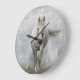 Schönes weißes Pferd in Nebel Große Wanduhr