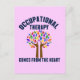 Die Berufstherapie kommt aus dem Herzen. Eine inspirierende OT Quote Postkarte für Ihren Berufstherapeuten mit einem niedlichen Regenbogenbaum, der die Hände als Hoffnungsschimmer unterstützt.