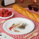 Vintage Watercolorillustration des klassischen Fairytale, der Schönheit und des Tieres. Schönheit ist in einem rosa Kleid und in einem roten Mantel, die auf einem Stuhl vor einer Tabelle mit einer weißen Tischdecke sitzen und eine Tasse Tee mit dem Tier, ein Braunbär essen. niedliches Tee-Set im Blau, in dem Schönheit eine Tasse Tee zum Tier überreicht, sitzend gegenüber von ihrer Tabelle mit weißem Tabellenstoff, hübsches blaues Tee-Set, silberne Fruchtschüssel und zwei alte Welthölzerne Stühle, die schauen, wie sie in einem Schloss gehören. Schönheit und das Tier sitzen an einem trinkenden Tee der Tabelle. Schönheit hat langes goldenes Haar mit Blumen auf die Oberseite. Schönheit und das Tier, das ein Tee-Party im Tier-Zuhause hat. das Tier ist ein Wirt, hat Schönheit als sein Gast. Vintage Malerei im Braun und im Rosa.