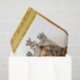 Vintage Kunst mit Malerei Illustration der klassischen Märchen, Schönheit und das Biest" Schönheit ist in einem rosa Kleid und roten Kleid sitzend auf einem Stuhl vor einem Tisch und eine Tasse Tee mit dem Tier, ein brauner Bär.
