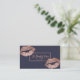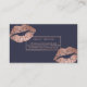 Eine elegante moderne, stilvolle und einfache Schönheitsraum-Geschäftskarte mit eleganter Skripthandbeschriftungs-Arttypographie mit den Imitat-Rosengoldrahmen und -lippen auf einem kundengerechten Hintergrund des Marineblaus. Ein einfacher und beruflicher Entwurf