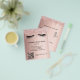 Eine Rose goldener Farbverlauf, mit Glitzer-Tropfen und Augenwimpern. Auf der Vorderseite: Der Text: Preisliste. Personalisieren Sie Ihren Namen und Ihre Adresse und fügen Sie diese hinzu. Erstellen Sie Ihren eigenen QR-Code, indem Sie Ihre URL zu Ihrer Website oder zu Ihrem Social-Media-Konto hinzufügen. Zurück: Ihr Text, Preise.