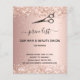 Ein goldener Hintergrund der Rose, mit Glitzer, Glitzern und einer schwarzen Schere. Auf der Vorderseite: Der Text: Preisliste. Personalisieren Sie Ihren Namen und Ihre Adresse und fügen Sie diese hinzu. Zurück: Ihr Text, Preise Um die Swashes behalten, löschen Sie nur den Beispieltext, verließ die Leerzeichen oder Emoji's vor und nach dem Text.