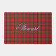 Willkommene Matte der eleganten und interessanten Tür, die den wunderbaren schottischen Clan-Stewarttartan kariert, mit individuellem Namen kennzeichnet.