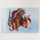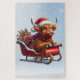Dieses reizvolle Design vereint den Charme und die Laune der Saison mit einer schwammigen schottischen Highland-Kuh, die als Weihnachtsmann verkleidet ist und in einer Schlitte sitzt und durch eine schneebedeckte Winterlandschaft gleitet.