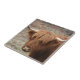 Schottische Hochlandkuh heraus zur Weide in Mittelmaine. Sieht wie eine Beatle Kuh aus. Ich wundere mich, wenn sie die Hörner spielt.