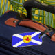 Schottland, zügelloser Löwe, alte Flagge von Gepäckanhänger