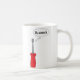 Eine lustige Grafik eines Schraubenziehers mit einem roten Griff und der Text "Eh, schraube es" in einer Sprechblase auf einer Tasse