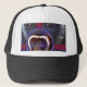 Der erschreckte Affe, ein Bild von Panik, Angst, Schrecken und Schrecken. Ein Primat, ein verängstigter Affe, offenbart die Angst, die er empfindet. Vintages farbiges Design. Geeignet für Halloween oder wenn der Nervenkitzel es vorschreibt.