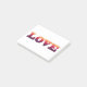 Schreib es Liebe ord in lila, rosa, gelb. Post-it Klebezettel