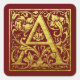 Schreiben A Erste Buchstaben Imitate Gold und Rot Quadratischer Aufkleber