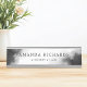 Schreibtisch mit dunkelgrauem Schreibtisch und Sch Schreibtischnamensplakette