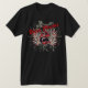Der schreiende Deko des Schädels #496 umfaßt die Hauptfront des T-Stücks in seinem ganzem Ruhm-Set in Flammen mit dem Danse makaberen alten englischen Logo