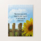 Schrift, Kolossians 3:17. Schöner sonniger Tag mit Sonnenblumen im Vordergrund. Was auch immer du in Wort oder Tat tust, tu alles im Namen des Herrn Jesus.